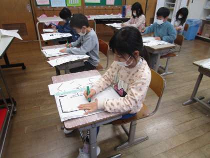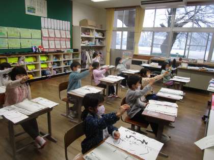 始業式の後、書き初め大会を行いました。小学校で初めての書き初めでした。一人一人冬休みにたくさん練習したようです。全員、去年より上達していました。