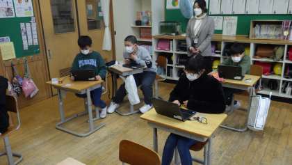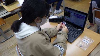 理科の学習でプログラミングにチャレンジしました。マイクロビットと呼ばれる機械に自分がプログラムしたデータを入れることで、光らせることができます。
