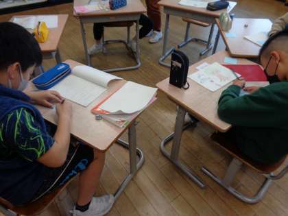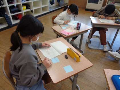 国語科「自分だけの詩集を作ろう」では、図書室にある様々な詩集を読み、自分のお気に入りの詩を集めました。今日は作った詩集の読み合いをして、友達の選んだ詩の見所を知り、コメントを出し合いました。