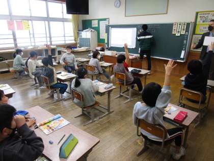 四角形や三角形等、様々な図形を英語で表しました。難しくても、がんばって発音しています。