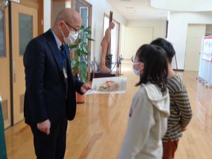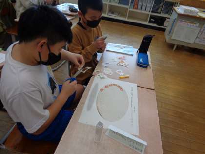 今日の外国語活動では、ピザに入れる具材の英単語を学び、ペアでオリジナルのピザ作りをしました。作ったピザは、校長先生や教頭先生、教務主任の先生に届けに行きました。”I want ○○.””Thank you.”と、外国語で会話することもできました。