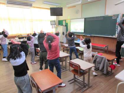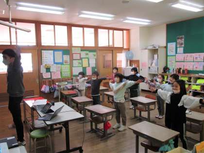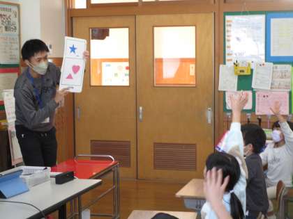 普段3〜6年生に外国語を指導している英語専科の先生が、今日は1年生教室で、楽しい外国語の授業をしてくださいました。赤や白や緑やピンク等の色を英語でなんと発音するか学んだり、リズムにのってダンスを踊りながら、英語の歌を歌ったりして楽しみました。みんな大喜びで身体表現していました。