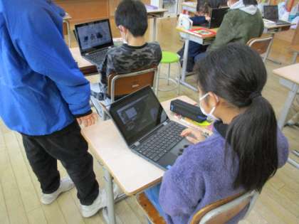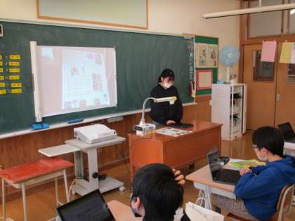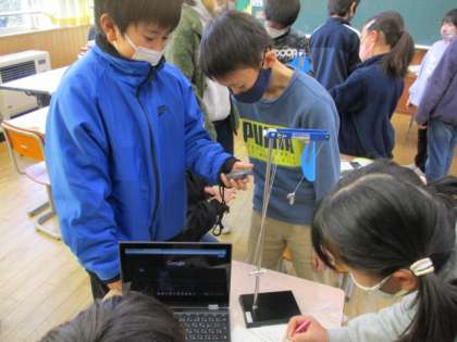 国語科では、「おすすめの本」の紹介動画をとるために、みんなで見合い、アドバイスや意見を伝え合いました。