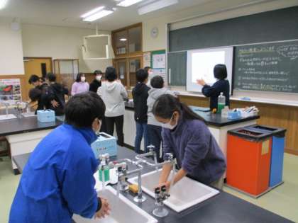 今日は健康委員会の「手洗い実験」ありました。特殊なクリームと光を使って、きれいに手を洗えているか確かめました。以外と汚れが残っていることに気付いた子供たちは、お昼には習った方法で熱心に手を洗っていました。