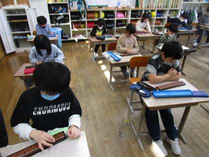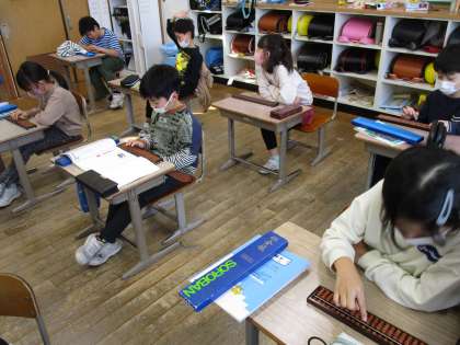 そろばんを使って計算しました。昔の人々の生活には、かかせない道具だったことを考えながら学習しました。