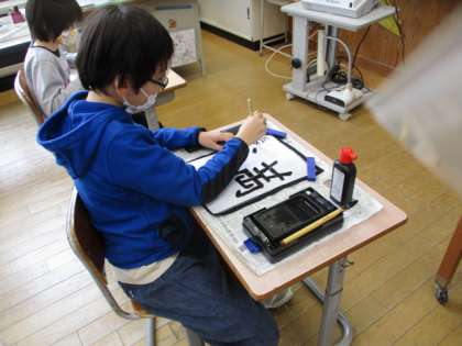 今日は最後の書写の学習で、今年1年間を振り返り、漢字で表しました。それぞれの個性が出ていて楽しかったです。