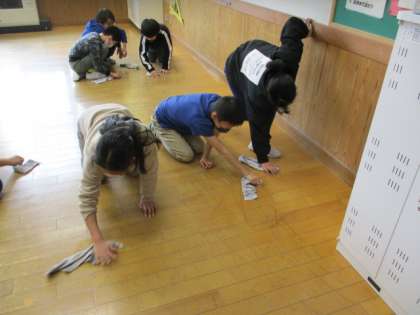 また、今日はワックスがけのために、今年1年間お世話になった教室をきれいにしました。