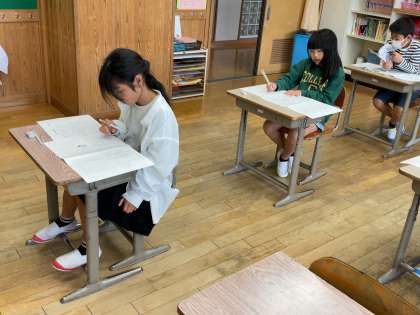 学力調査1日目「国語」でした。問題用紙と解答用紙が分かれているテストに苦戦しながらも精一杯取り組みました。