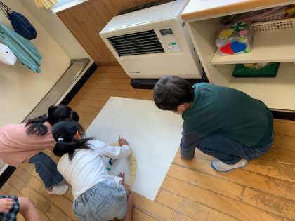 学級目標のデザインを自分たちで描き始めました。自分たちで学級目標を描くことで意識して取り組めるようにしていきます。