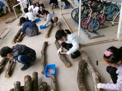 金槌の扱い方に気を付けて、安全に行うことができました。子供たちは手際よく、丁寧に進めていました。