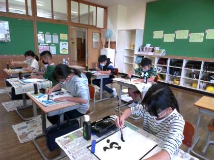 「点画のつながりと字形を意識して書こう」という目当てのもと、「ふるさと」を書きました。きれいに書こうとポイントを意識しながら真剣に取り組む姿が見られました。