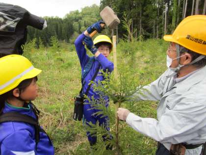 今回は、雪の重みで曲がった木を直す作業など体験しました。