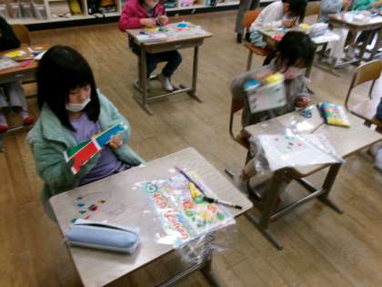 フィルムやシールの切り方をどのように工夫するか、子供たちは作りたいものを想像して仕上げていました。
