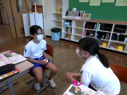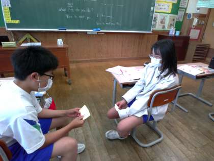 友達に英語で好きなものを尋ねたり、伝えたりしました。楽しみながら活動する姿が見られました。
