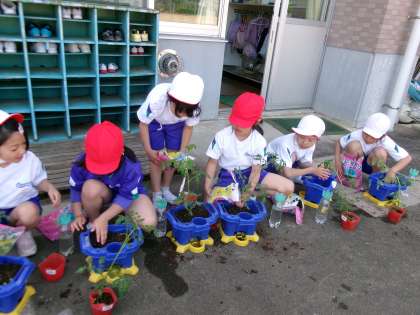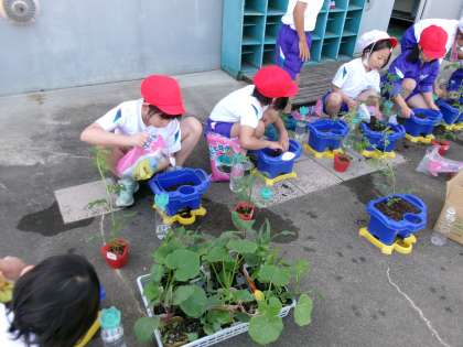 ミニトマトを鉢に植えました。ミニトマトに優しく声をかけながら植えている子供たちもいました。元気に育って、おいしいトマトになってほしいです。