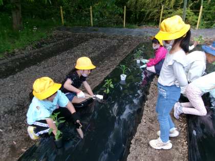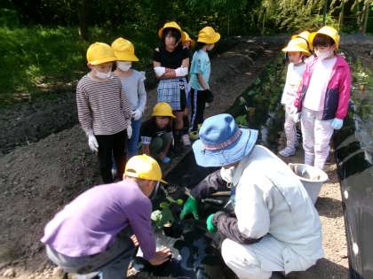 植える際は用務員さんに、上手な植え方を教わりました。収穫が楽しみです。