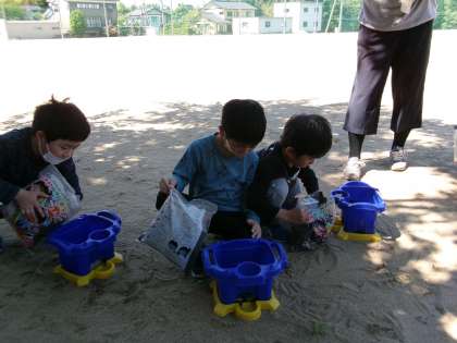 今日の生活科では、鉢に土を入れて、種を植える準備をしました。あさがおの学習のテーマは「自分で」です。さっそく「自分」の力で準備をすることができました。明日は種を植えます。