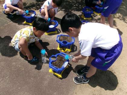 金曜日には、前日準備した土に種をまきました。種のまき方をよく聞き、自分で行うことができました。早く花が咲いてほしいと話していました。