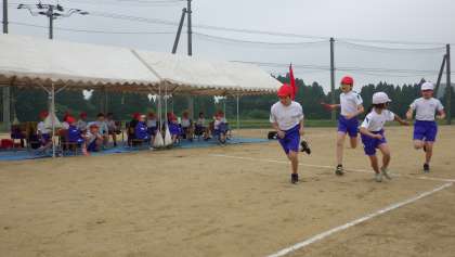 100m走と高学年リレーの様子です。高学年らしく堂々と競技に臨む姿がたくさん見られました。
