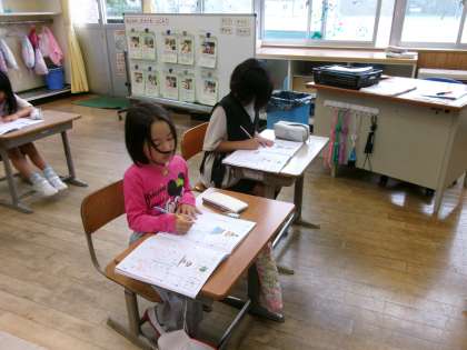 漢字の学習では、姿勢を正して描く姿が見られました。字を丁寧に書こうと、手本を見ながら一字一字気を付けて書いていました。