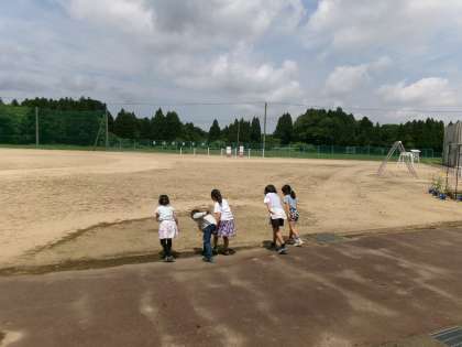 ここ数日はあいにくの雨でしたが、午後には太陽が見えて、さわやかな天気になりました。子供たちは、「よーいどん!」と一直線にグラウンドの遊具へ走って行きました。