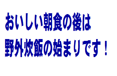 二日目の活動は野外炊飯です!今日も目当てを意識しながら、楽しみながら成長できる一日にできるとよいですね!