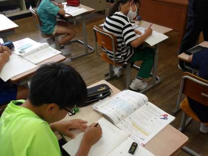 算数では、図や言葉、数直線を使って、ノートに考えを書き出しました。5年生は、字をとても丁寧に書きますね。