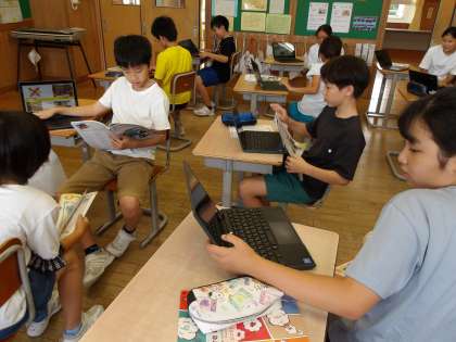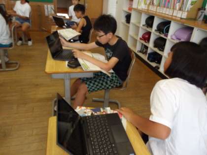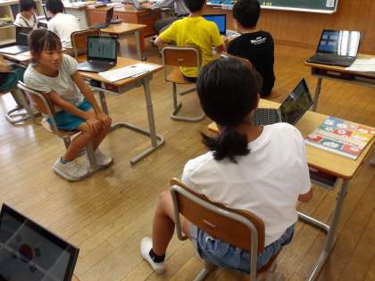 ペアになって、外国の食べ物や名所を、クロムブックを使いながら紹介しました。