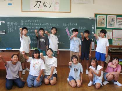 学活の授業では、子供たちの夏の思い出や自由研究について紹介し合いました。