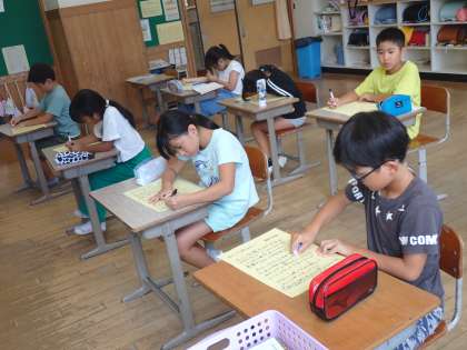 国語科「詩を味わおう」では、「わたしと小鳥とすずと」の学習をしました。詩のリズムや内容の良さを感じながら視写を行いました。