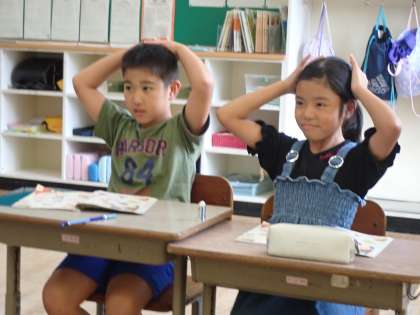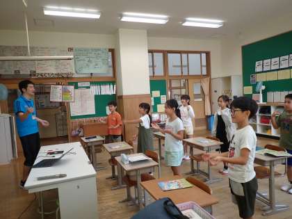 どんな色が好きか、どんな果物が好きか英語で表現しました。