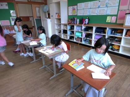 ぬり絵係さんの企画で、ぬりえ大会が行われました。ぬり絵係さんが作ったぬり絵に、子供たちそれぞれで色をぬります。