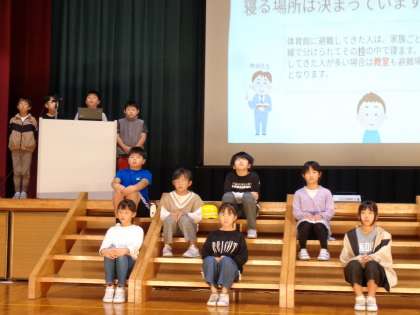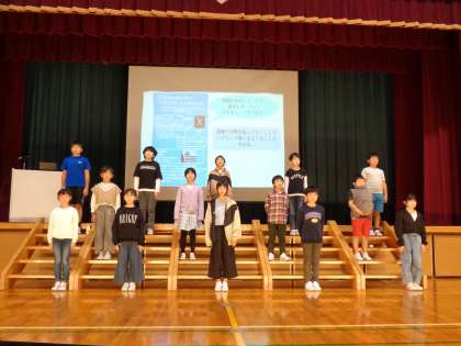 4年生は練習以上に堂々とした態度で発表することができました。子供たちは大きな声で伝えること、前を向いて目線を上げることを意識しました。自分がたてた目当てを達成するために子供たちは頑張りました。保護者の皆様には、アンケートやインタビュー等、ご協力いただきました。ありがとうございました。