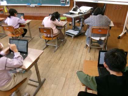 算数では、同じ数のまとまりを作ってかけ算の式に表し、数を数える学習をしました。友達が作った図を見てみると、いろいろな考え方があることに気づき、子供たちはおどろいていました。