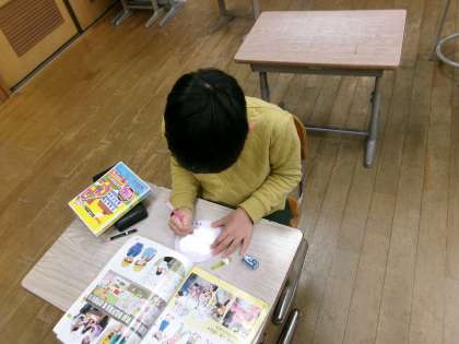 新1年生体験入学に向けて、新1年生さんに渡す名札を作りました。いつもより一層丁寧に、新1年生さんの名前を書きました。とても気合いが入っていました。