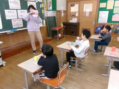 養護教諭による、歯みがき教室がありました。歯ブラシの持ち方や力の入れ方等を聞きながら、丁寧にみがくことができました。