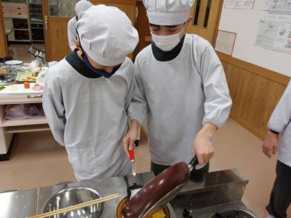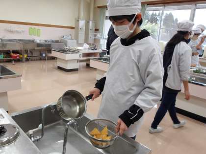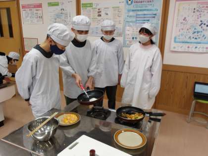 下ごしらえをしたり、炒めたり。これまでの学習を生かして、手際よく進めています。