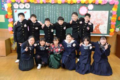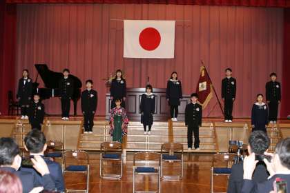 卒業式を行いました。体育館には1〜5年生の在校生が参加し、教職員、保護者、来賓の方々とともに6年生の門出を祝いました。