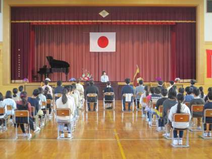 暖かい春の日差しのもと、令和6年度入学式を行いました。新1年生5名を迎え、2年生〜6年生の子供たちは、とてもうれしそうでした。1日も早く小学校生活に慣れるよう、全校のみんなでサポートしていきます。
