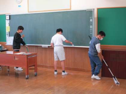 はりきって清掃です。校舎に感謝を込めつつ、自分たちで環境を整えられるようがんばっています。
