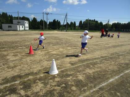 さわやかな風をうけながら、バトンの受け渡しの練習をしました。