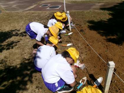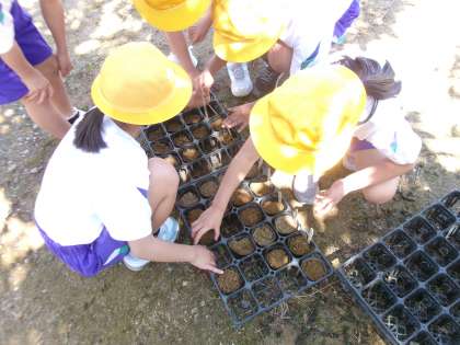 ホウセンカ、ヒマワリ、ピーマン、オクラの種植えをしました。大きさ、形、色が様々な種からどんな芽がでてくるのか話しながら植えていました。