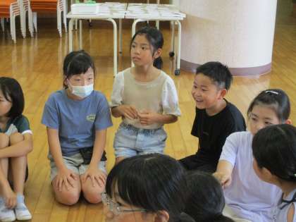古里小学校4年生の皆さんを音川小学校に迎え、ゲームを通して交流しました。始めは緊張気味でしたが、どんどん笑顔が増えました。その後、一緒にバスに乗り校外学習スタートです。まずは、富山環境整備に向かいます。