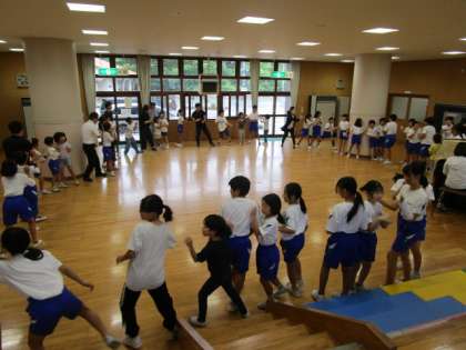 金曜日の朝は、全校音楽でスタート。講演会で教えていただいた歌遊びを、子供たちと教職員、全員で楽しんだ後、「にじ」を歌いました。しっとりと雨が降る梅雨の空。大きな虹が空に架かる雨上がりが待ち遠しくなりました。