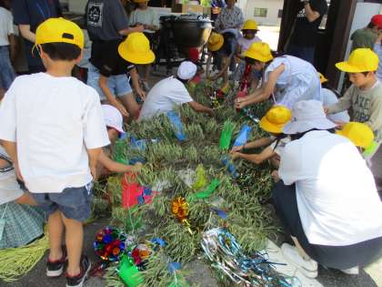全校みんなで短冊に願い事を書き、笹竹に飾り付けました。その後、音川交流センター玄関に飾りを付けた竹が飾られました。みんなの願いが叶いますように…。