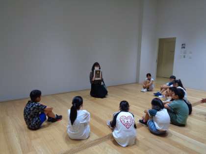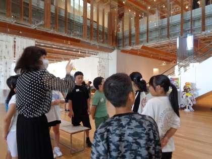 ガラスでできた色鮮やかな作品に、子供たちは歓声を上げ、作品のすきな部分を友達と伝え合ったりしました。