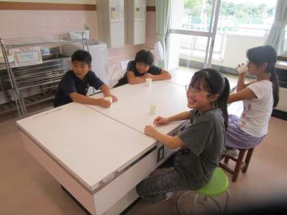 子供たちは、班ごとに分かれて、「にぼし」「こんぶ」「かつおぶし」の出汁を味わいました。