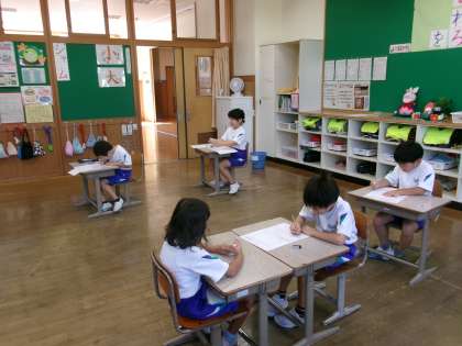 2学期に入って係活動がはじまりました。休み時間に可愛いくまを持ってきた折紙係の子供と仲良くおりがみで遊ぶ姿が見られました。