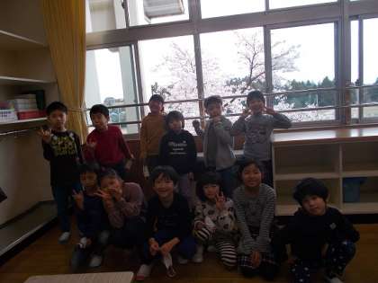 1学期が始まりました。3年生は教室から見える満開の桜と一緒に記念撮影をしました。