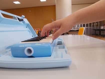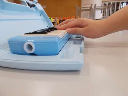今日はけんばんハーモニカにかんする問題です。けんばんハーモニカをひくときの手の形はどれがよいでしょうか。